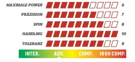 Síla bez námahy: Kombinace pružné struktury ze skelných vláken (Soft Fiber) a aerodynamického designu umožňuje, aby se míč odrážel explozivně a bez nutnosti vynaložit velkou fyzickou sílu.