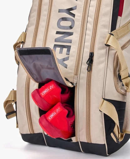 Pozvedněte svou hru na novou úroveň s bagem, který definuje budoucnost tenisových zavazadel. Yonex GEARLOGIC není jen taška – je to váš osobní mobilní locker, který v sobě snoubí sofistikovanou béžovou estetiku s nejmodernějšími technologiemi. Tento model o velikosti 9pcs je určen pro hráče, kteří na kurt nosí kompletní arzenál a vyžadují stoprocentní ochranu své výbavy.